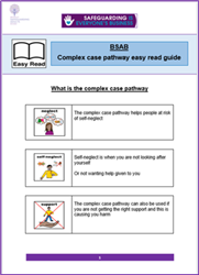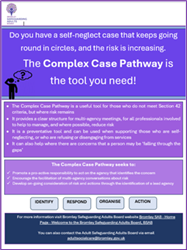 Complex Case Pathway - framework and guidance that promotes multi-agency working in supporting people with complex needs who may be at risk of abuse of neglect due to either a lack of engagement with services or because they do not meet eligibility criteria for one or more services but have safeguarding needs that might benefit from a multi-agency response.